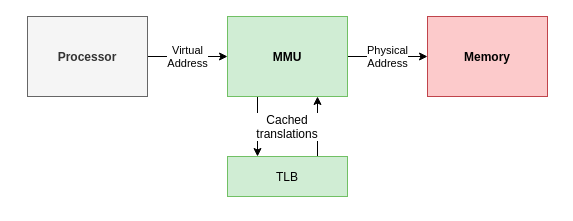 Além de um endereço de saída, uma entrada da tabela de tradução que se refere à página ou região da memória inclui campos que definem propriedades da região de memória de destino. Os campos de controle de acesso, que serão descritos a seguir, determinam se o processador, em seu estado atual, tem permissão para realizar o acesso necessário ao endereço de saída fornecido no descritor da tabela de tradução.
