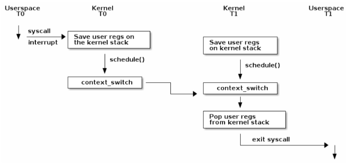 O conjunto de chamadas de sistema (syscalls) é a interface entre o sistema operacional e seus programas aplicativos, sendo esta utilizada para que a aplicação a nível de usuário requisite serviços privilegiados a nível do kernel do sistema operacional. Estes serviços podem ser relacionados à hardware, tal como acessar um disco rígido, ou relacionado ao sistema operacional, como a criação de novos processos.