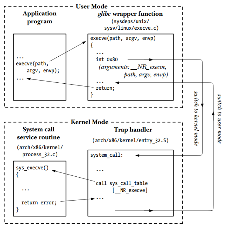 - nível maior de compatibilidade binária entre arquivos compilados por diferentes versões do Linux, pois uma chamada de sistema permanece a mesma: uma única execução da instrução de system call em vez de uma chamada de função direto para o endereço na biblioteca do kernel.